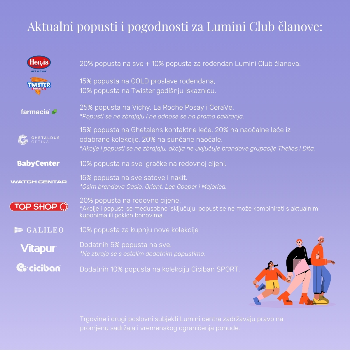 vaša Lumini Club kartica čekat će vas na Mjestu za informacije.