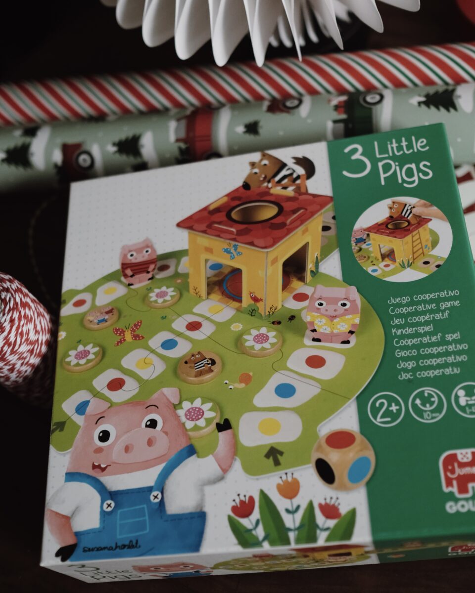 Četverogodišnjaci obožavaju izazov. Zato sam odabrala Tri praščića, društvenu igru koja je zrabavna, taktička i idealna za razvijanje logike. Zamišljam smijeh oko stola, male glavice koje smišljaju strategiju i one male pobjene koje ih čine ponosnima.
